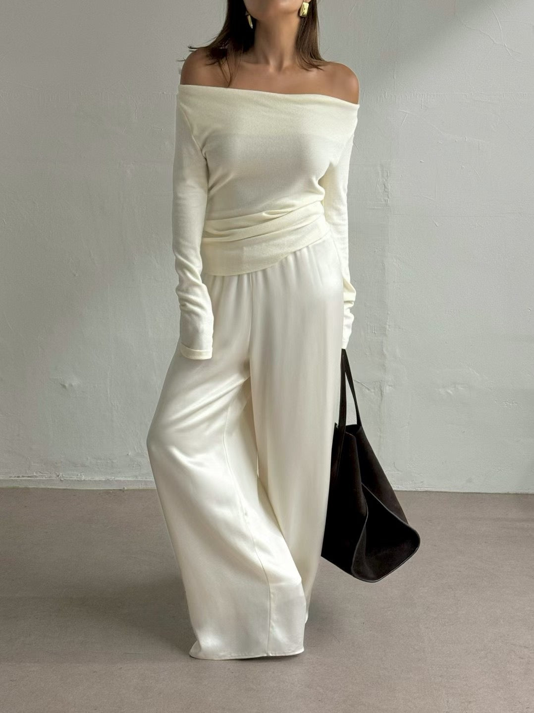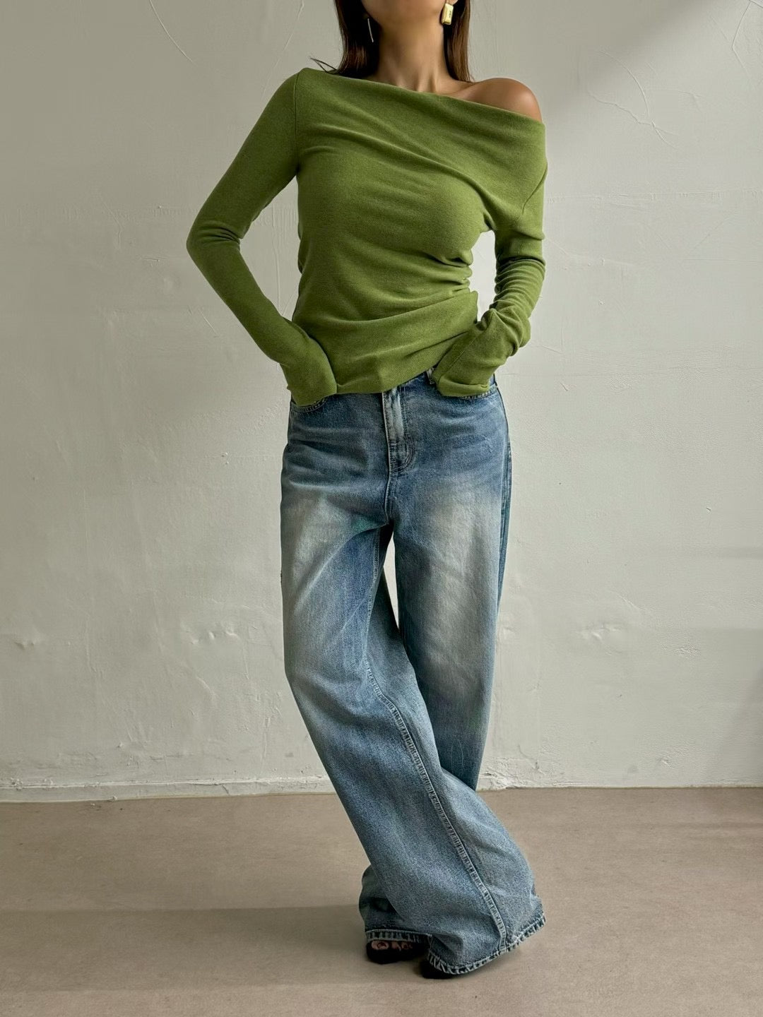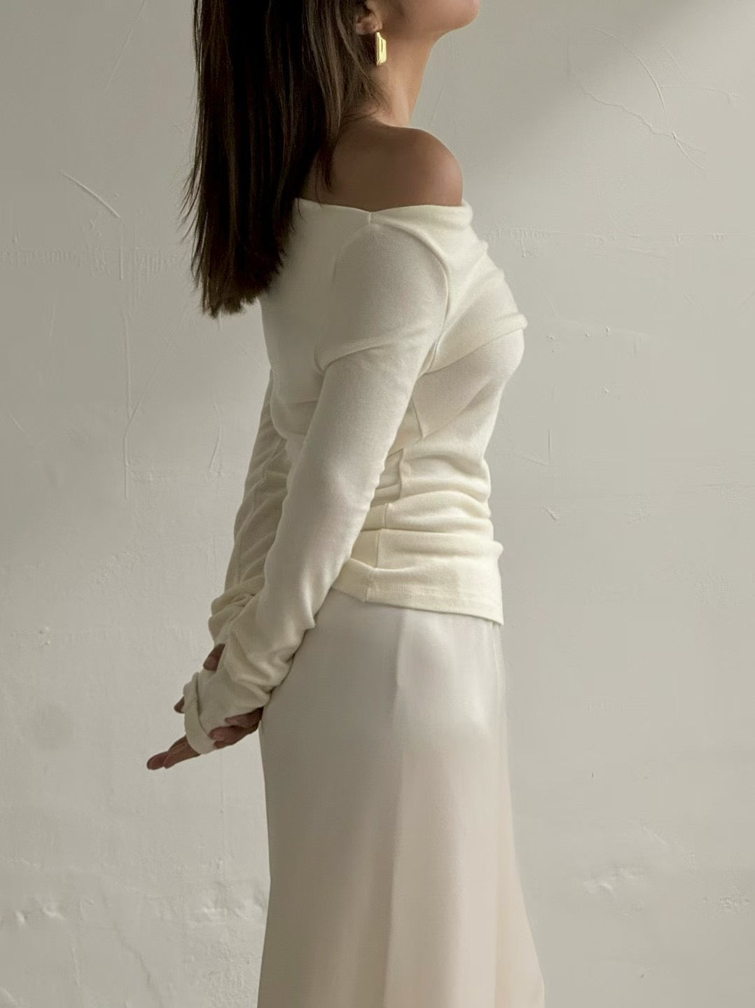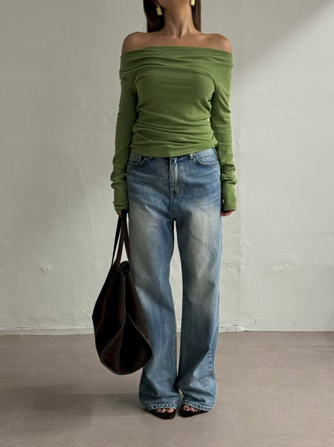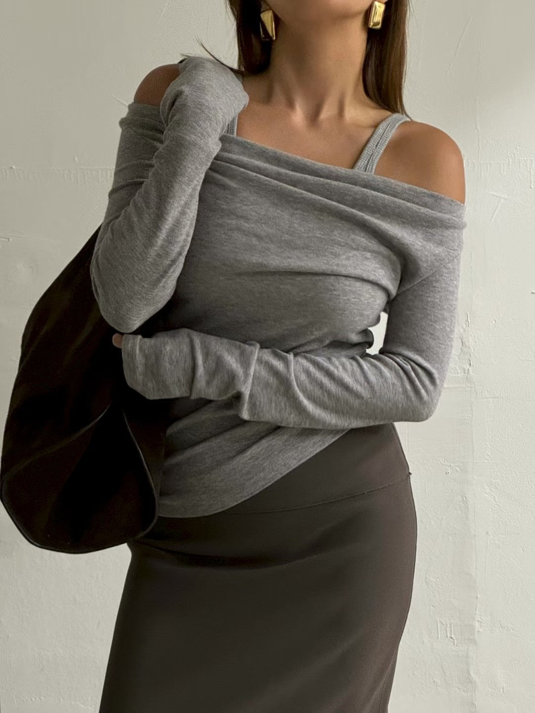 秋冬性感:羊絨混紡垂墜露肩長袖上衣