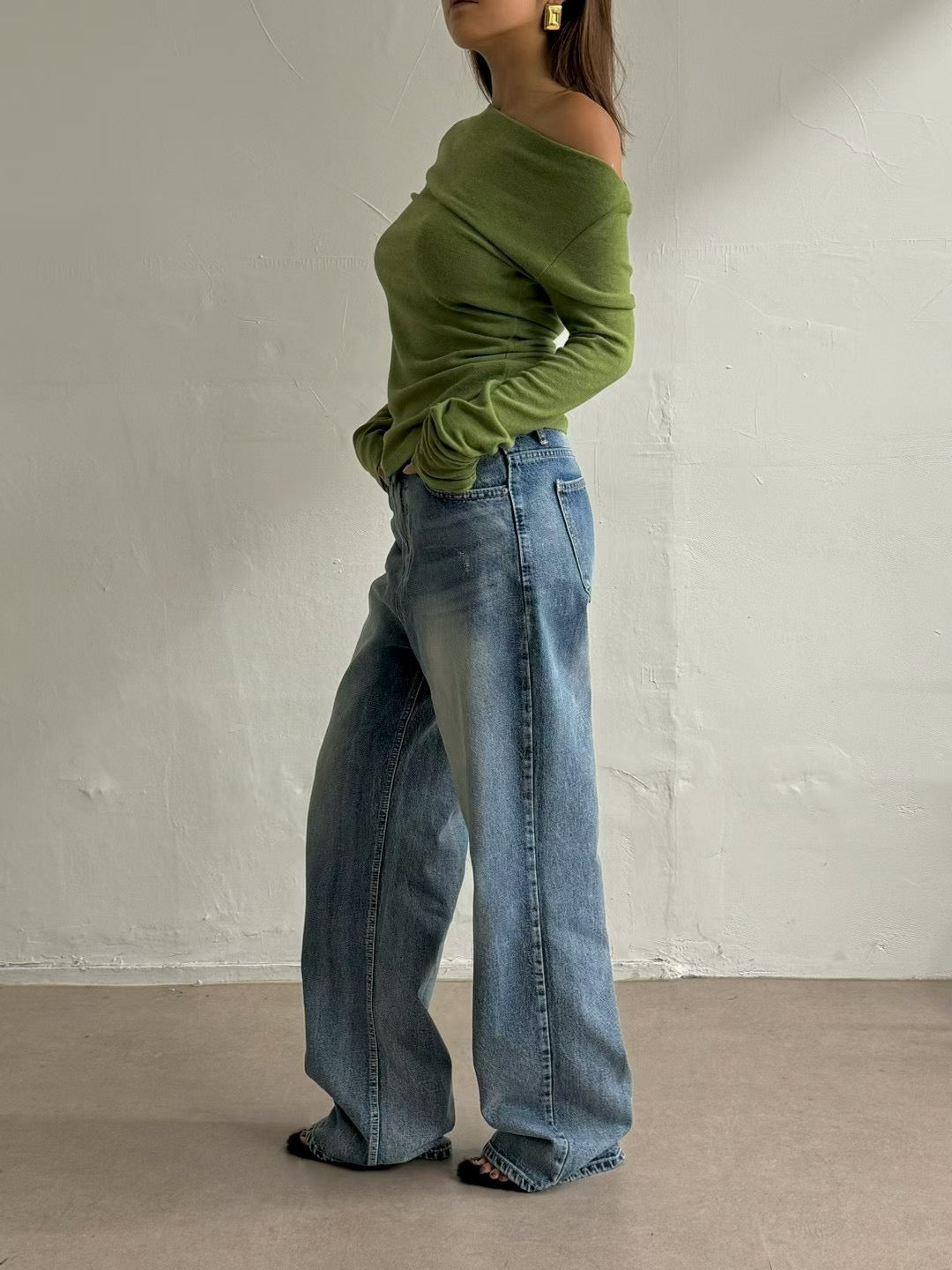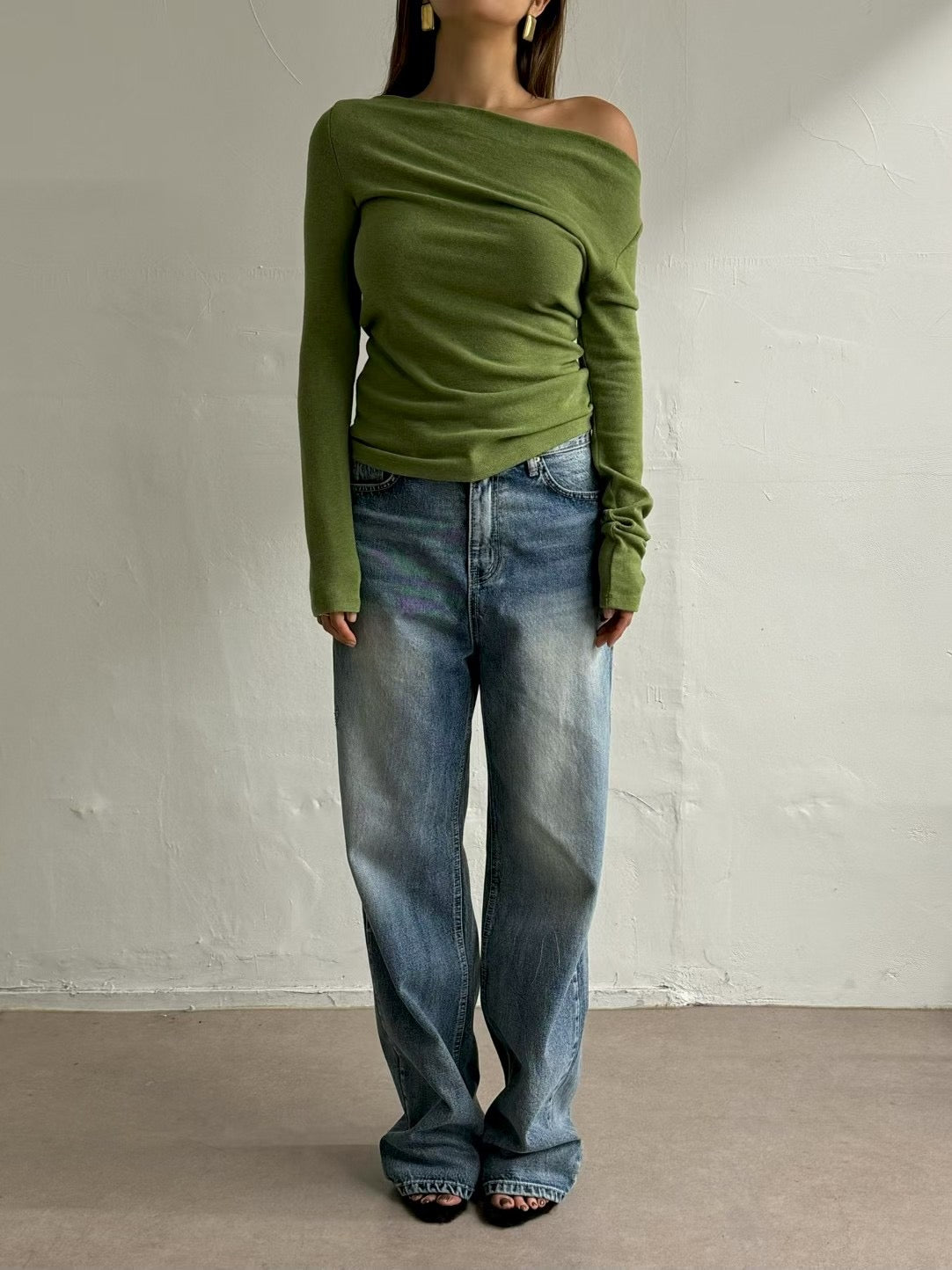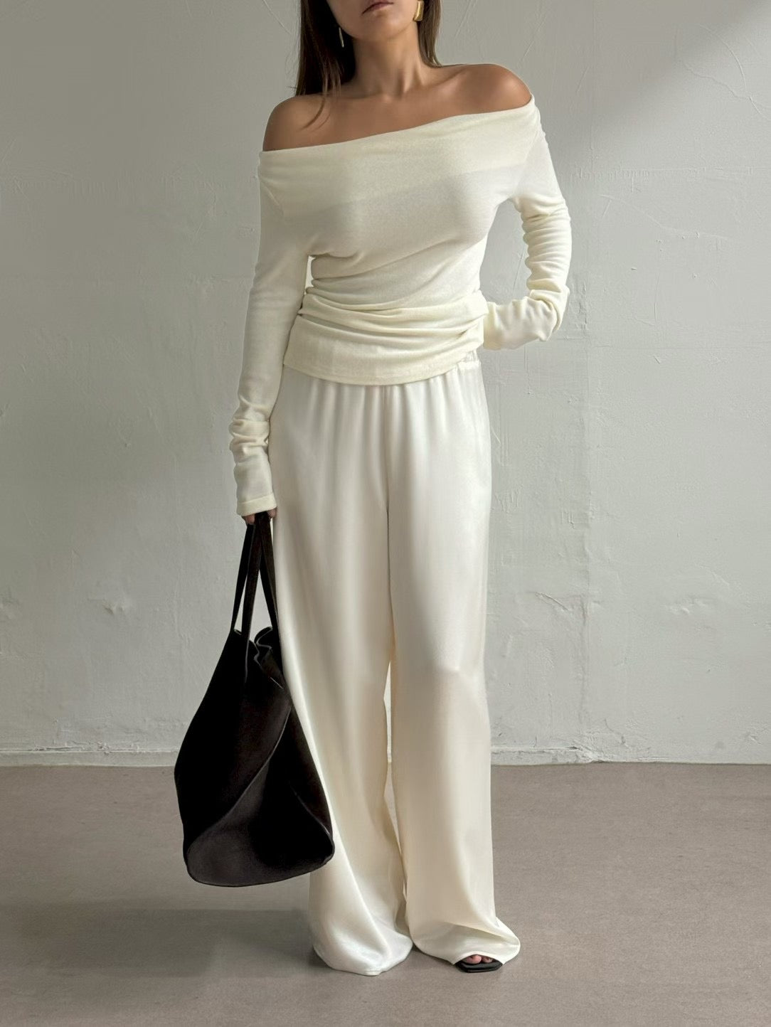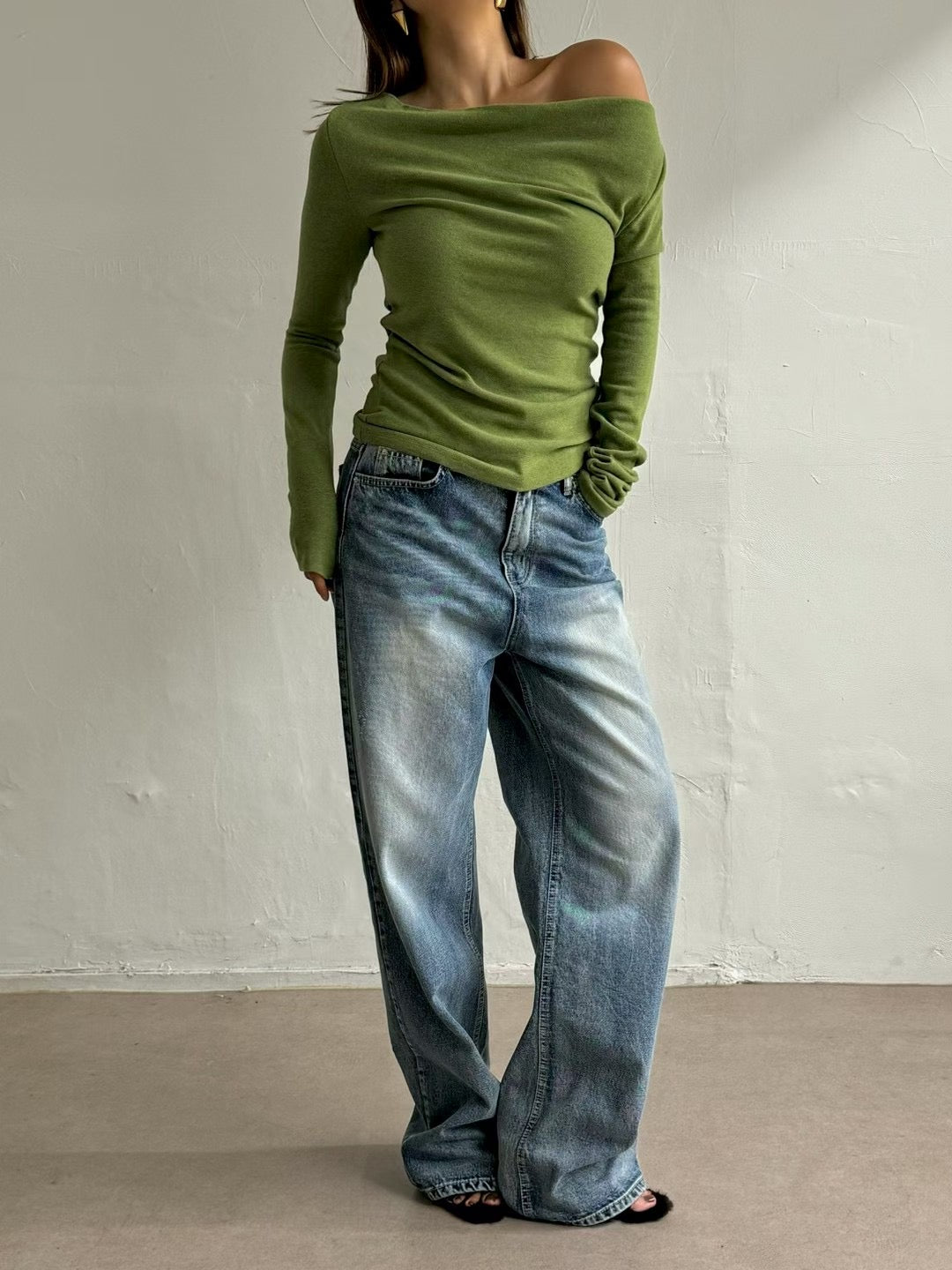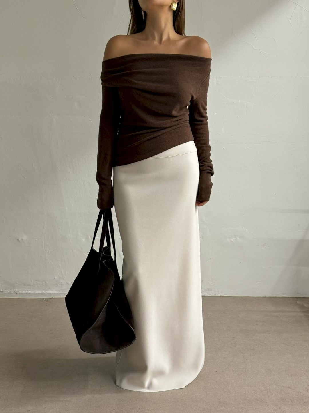 秋冬性感:羊絨混紡垂墜露肩長袖上衣