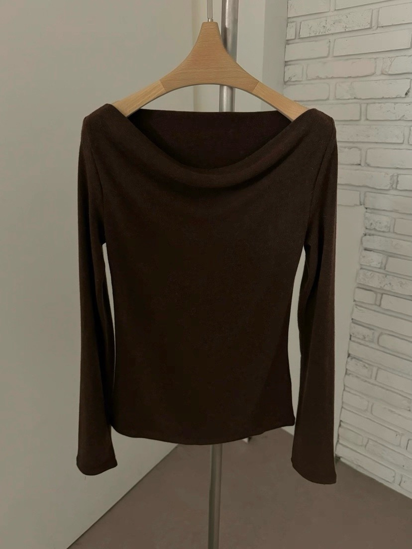 TP22019- 韓國秋冬性感羊絨混紡垂墜露肩長袖上衣