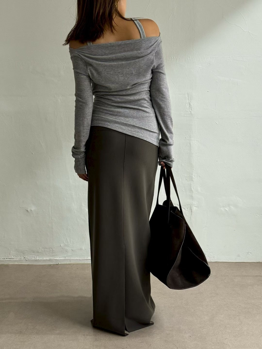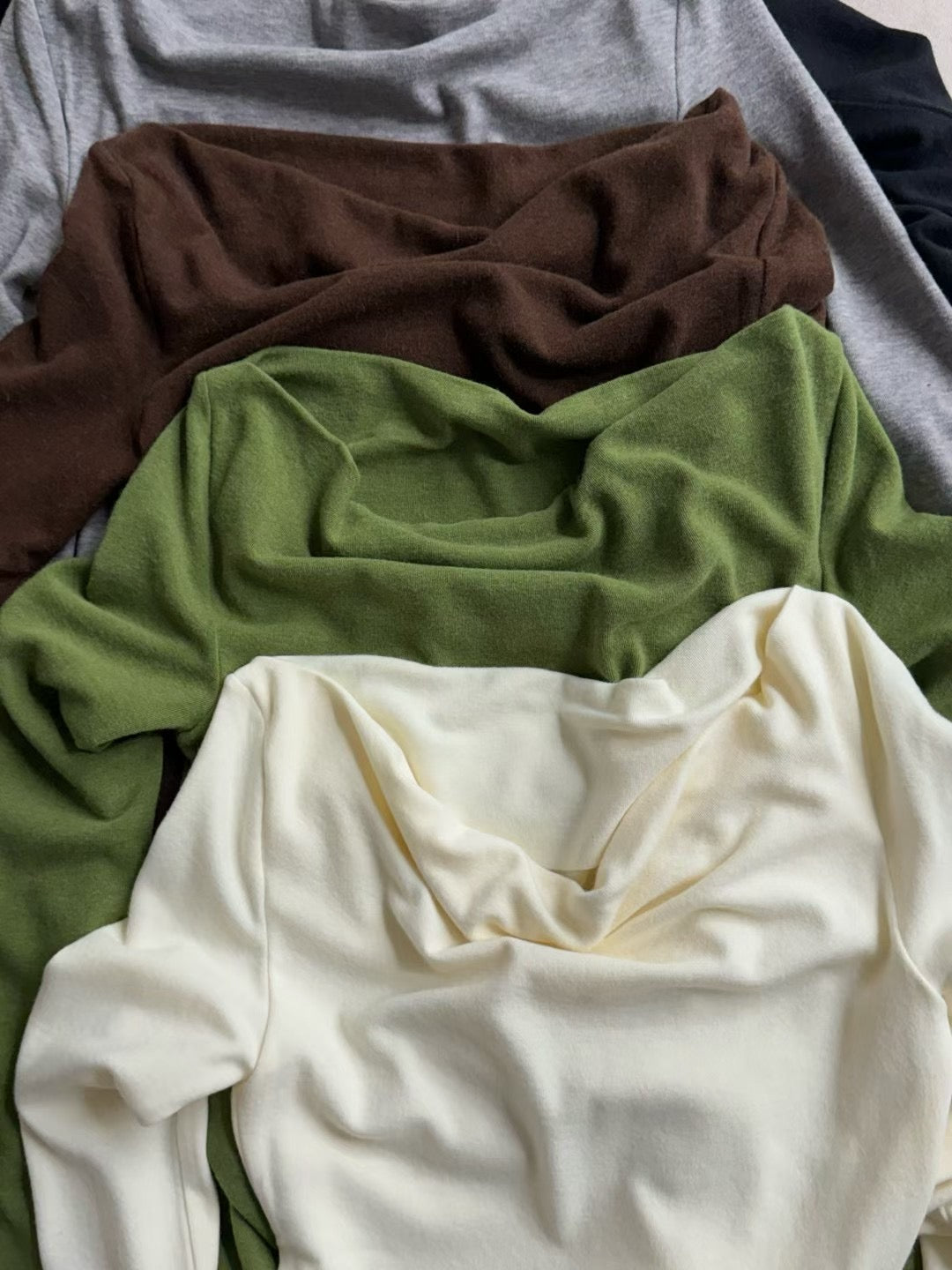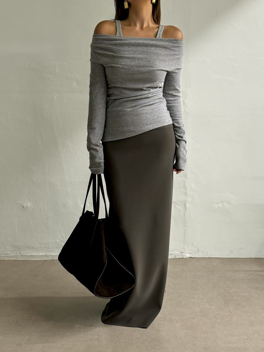這款羊絨混紡垂墜露肩長袖上衣,專為追求極致性感與優雅曲線的你而設計。它將柔軟的奢華面料與不對稱的垂墜感完美結合,輕鬆穿出毫不費力的韓系高級感。