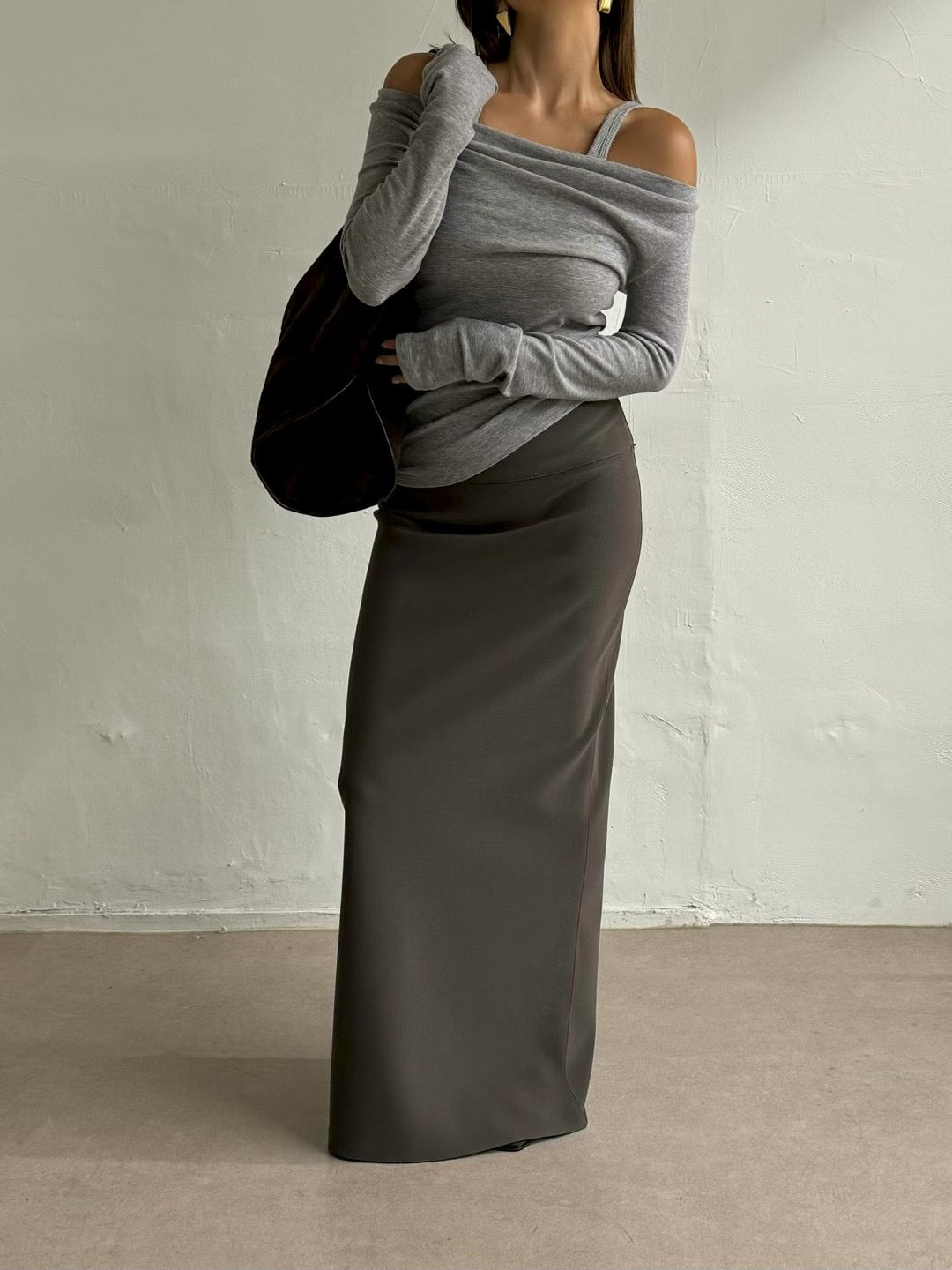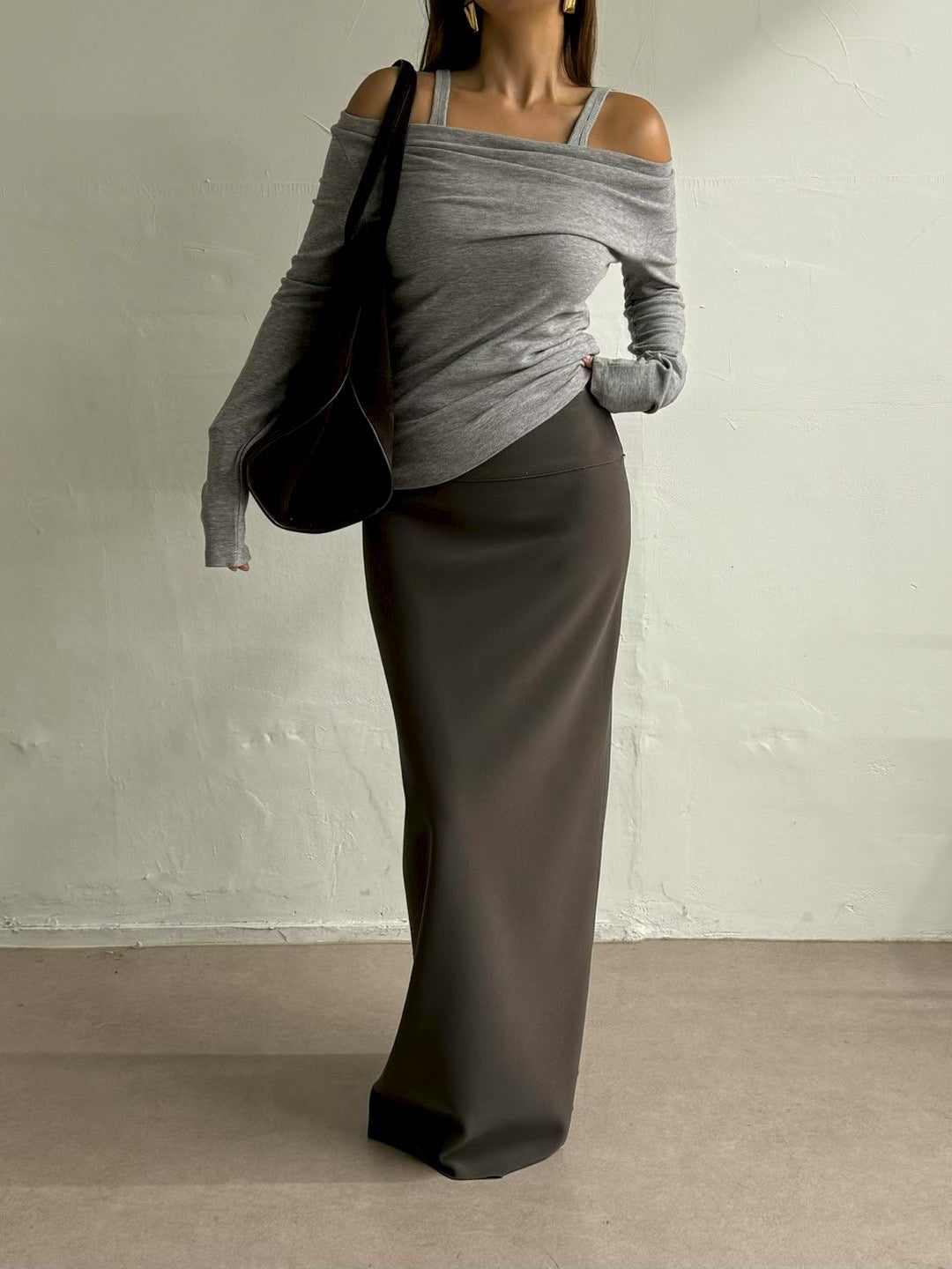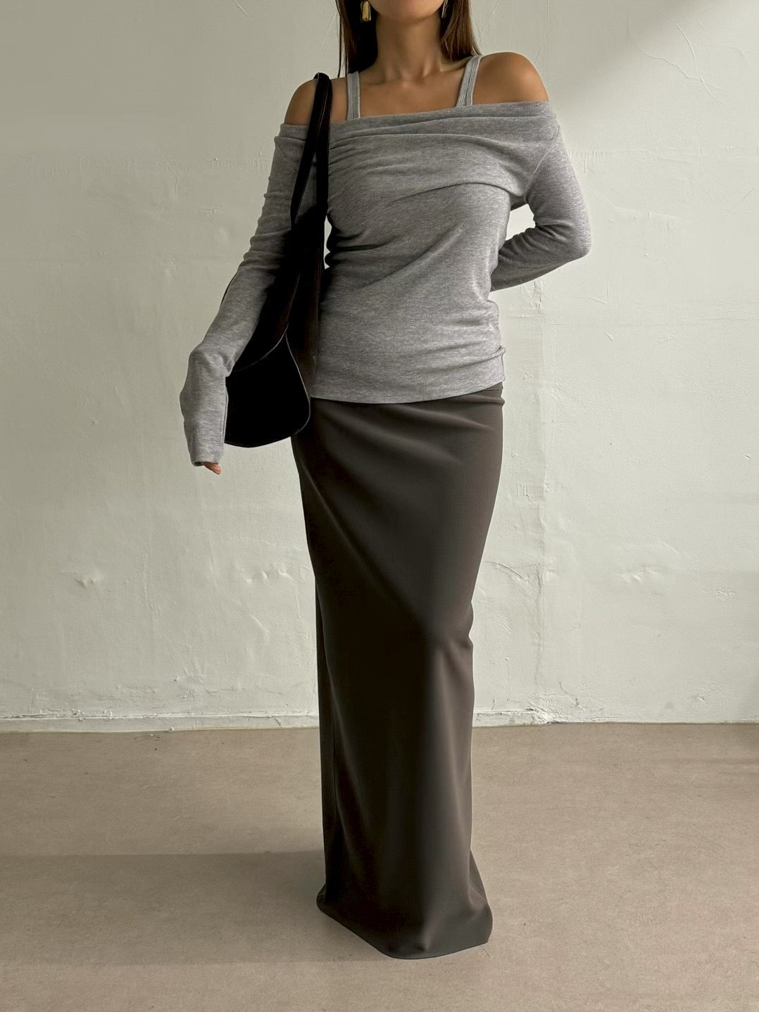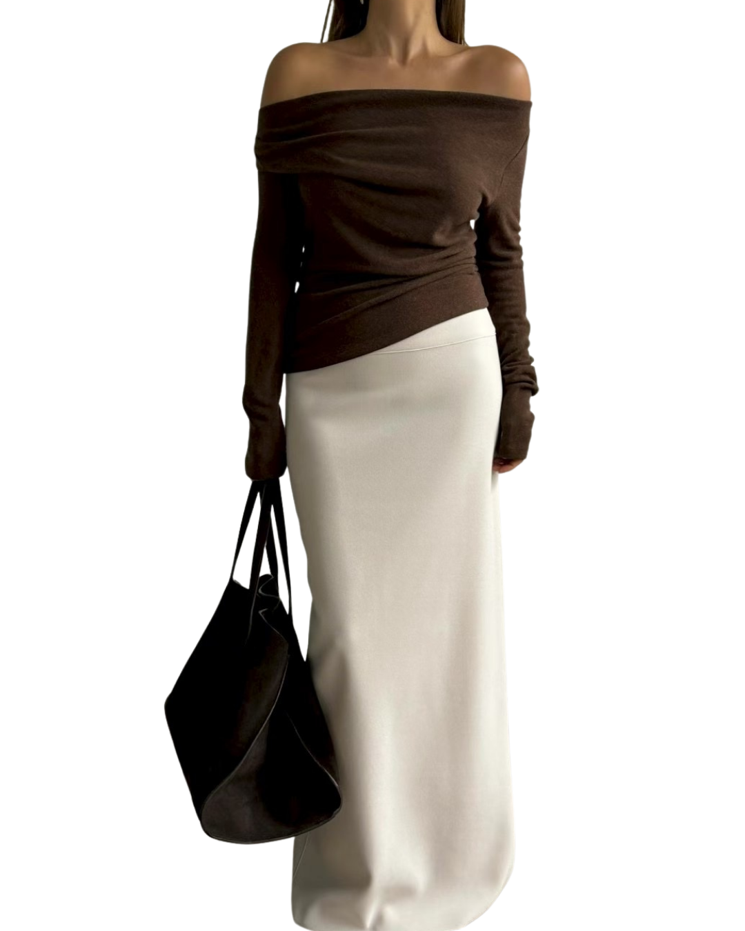 這款羊絨混紡垂墜露肩長袖上衣,專為追求極致性感與優雅曲線的你而設計。它將柔軟的奢華面料與不對稱的垂墜感完美結合,輕鬆穿出毫不費力的韓系高級感。