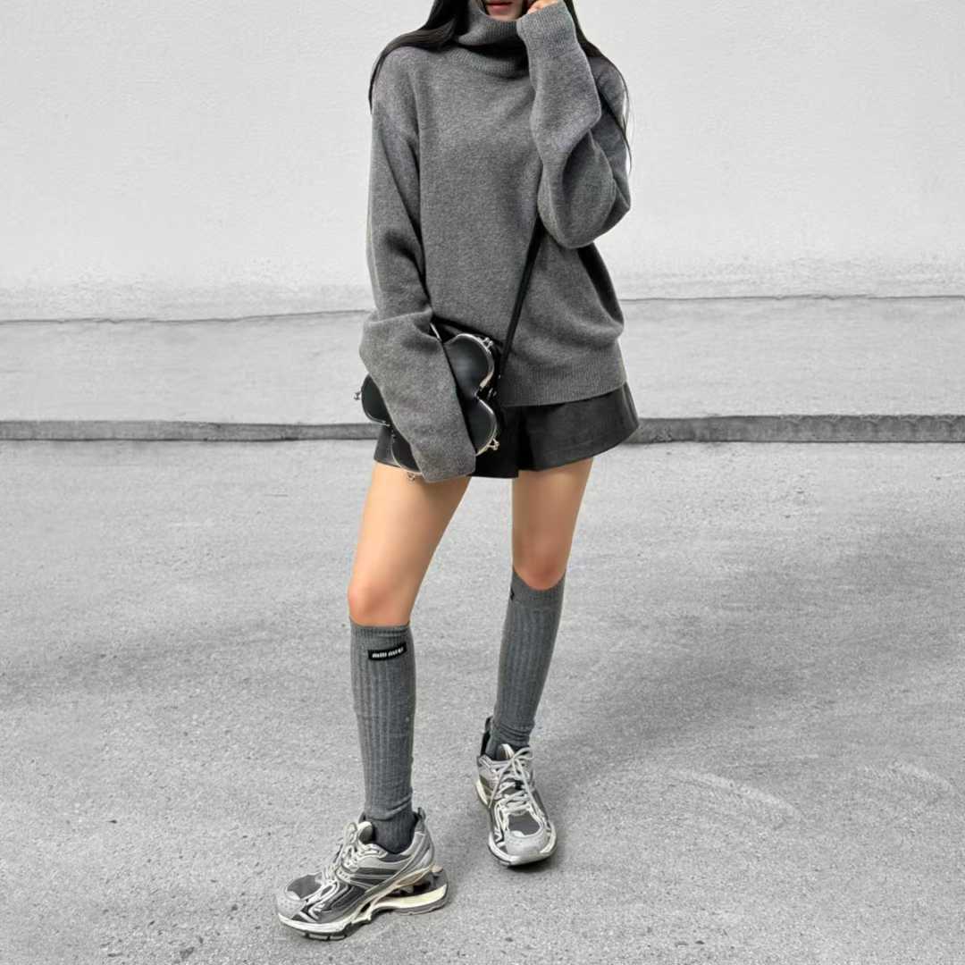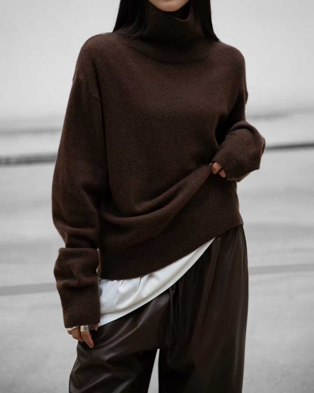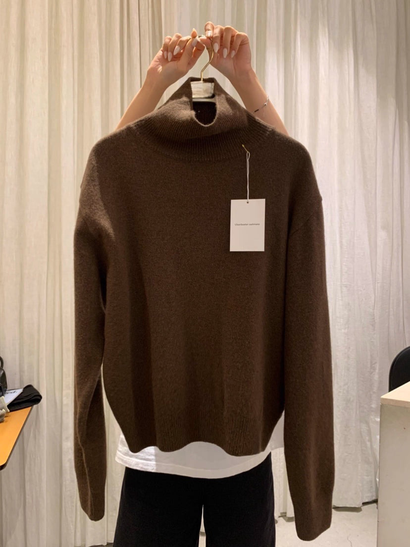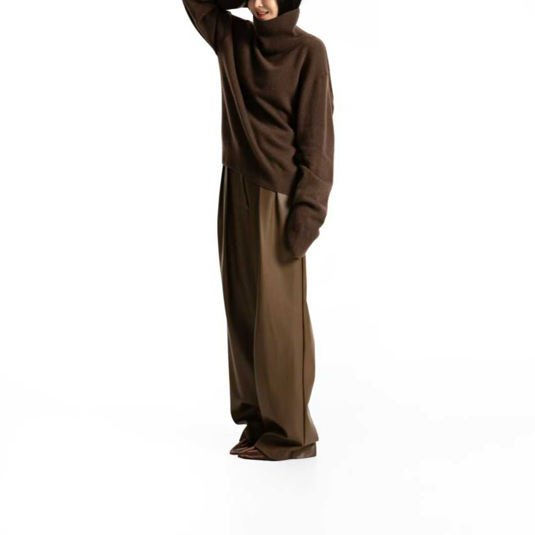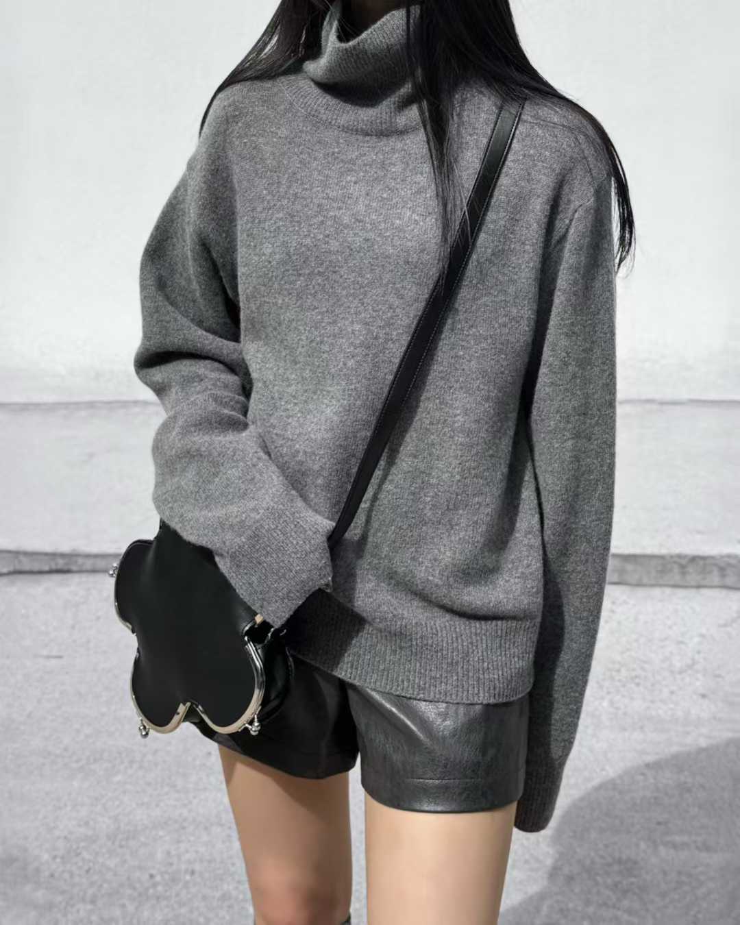 設計與風格: 經典的**堆堆領(高領)**設計,溫柔修飾頸部線條,同時有效防風保暖。寬鬆慵懶的版型與恰到好處的衣長,無論是將下襬紮進褲子裡,或自然垂墜,都能營造出毫不費力的隨性高級感。