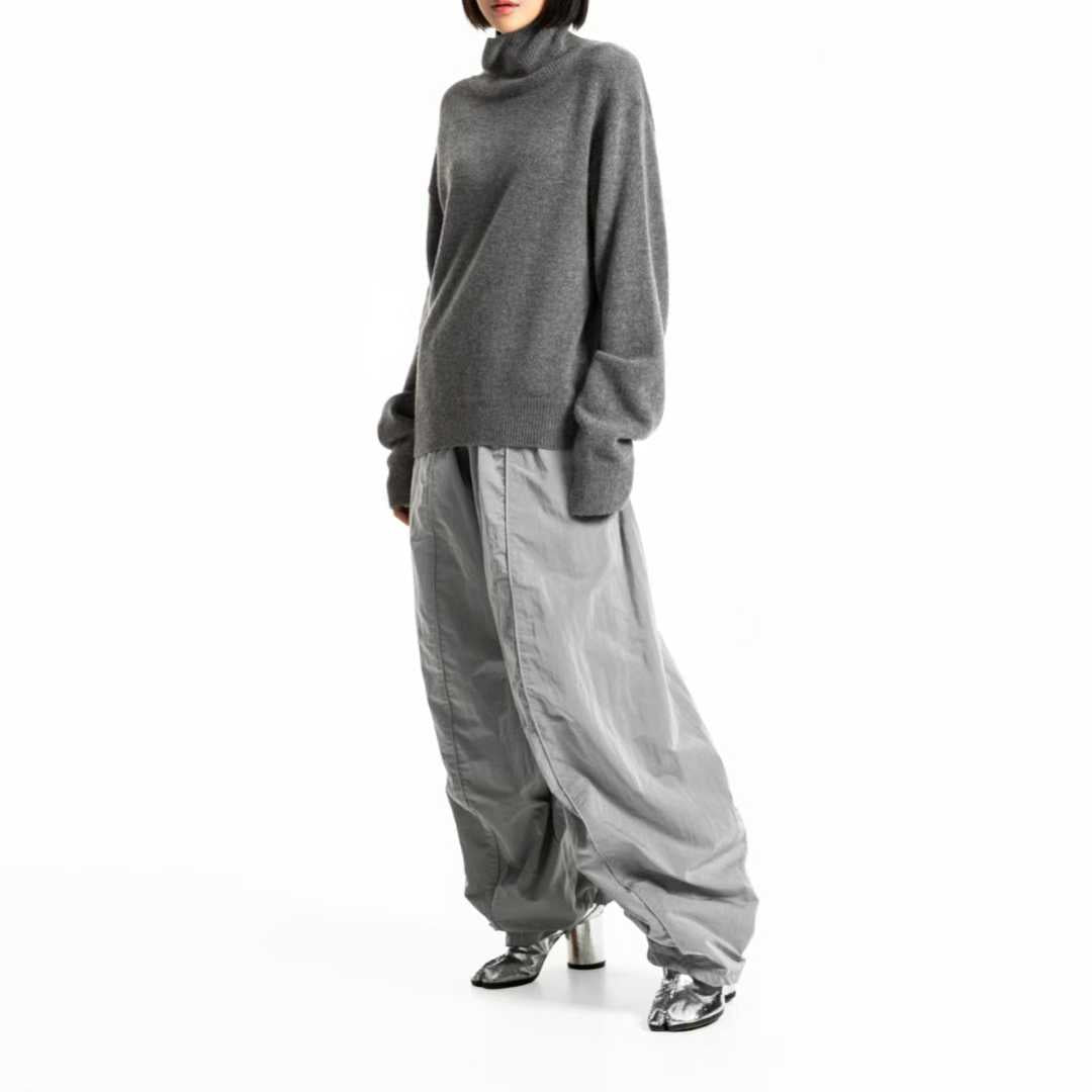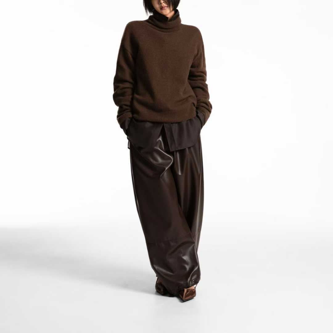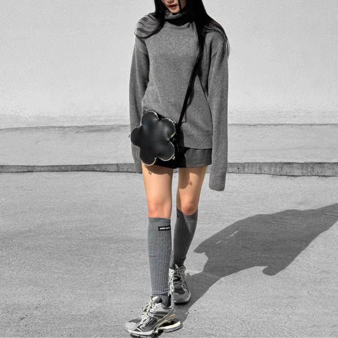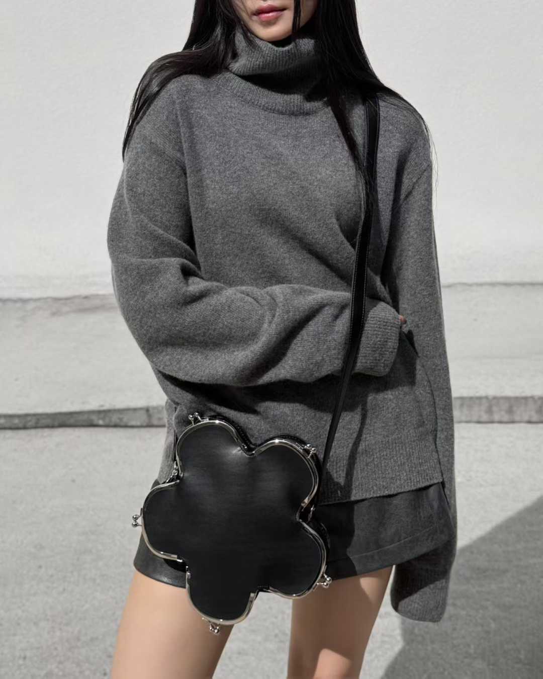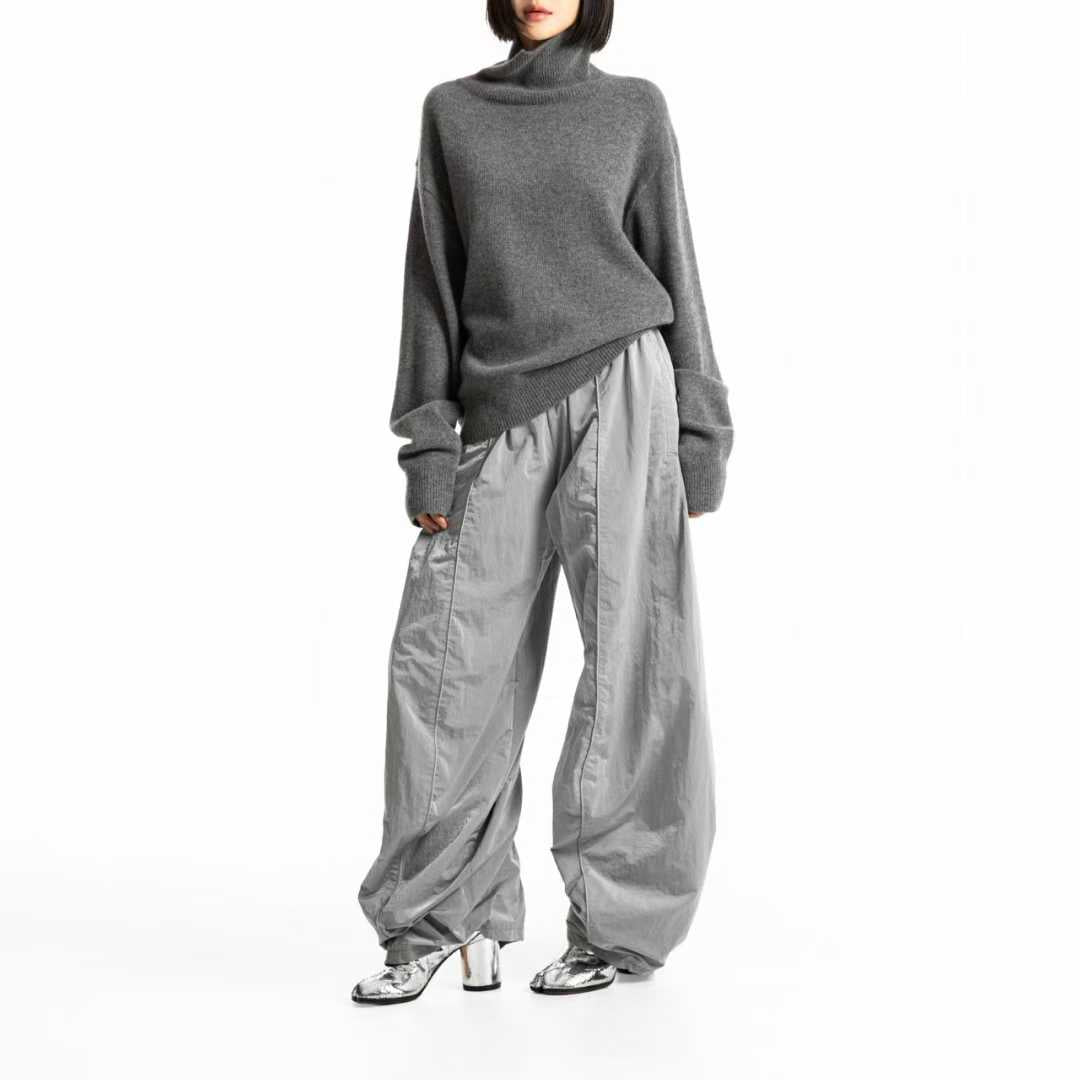 設計與風格: 經典的**堆堆領(高領)**設計,溫柔修飾頸部線條,同時有效防風保暖。寬鬆慵懶的版型與恰到好處的衣長,無論是將下襬紮進褲子裡,或自然垂墜,都能營造出毫不費力的隨性高級感。