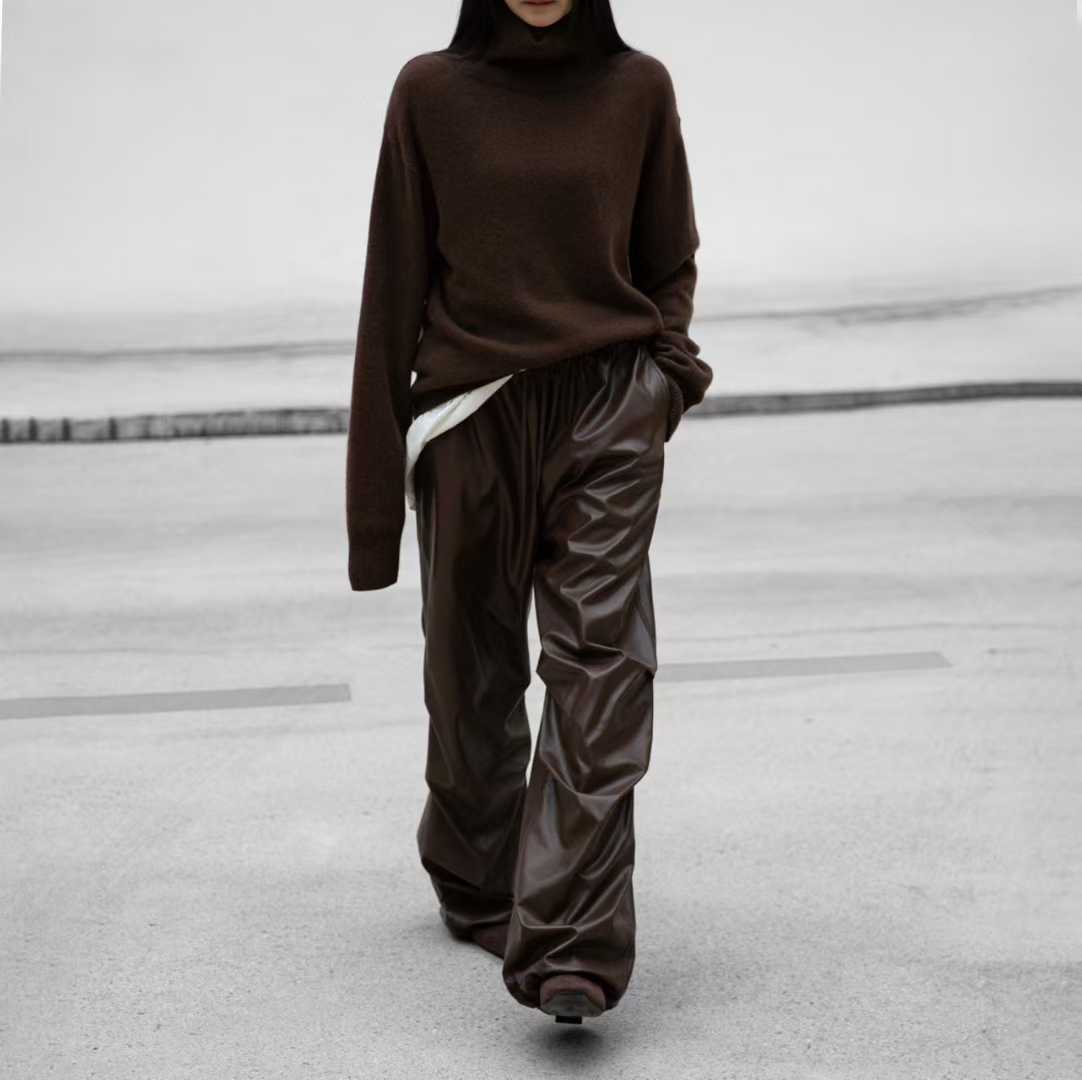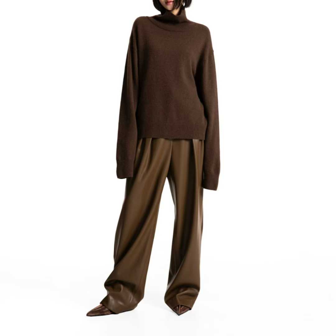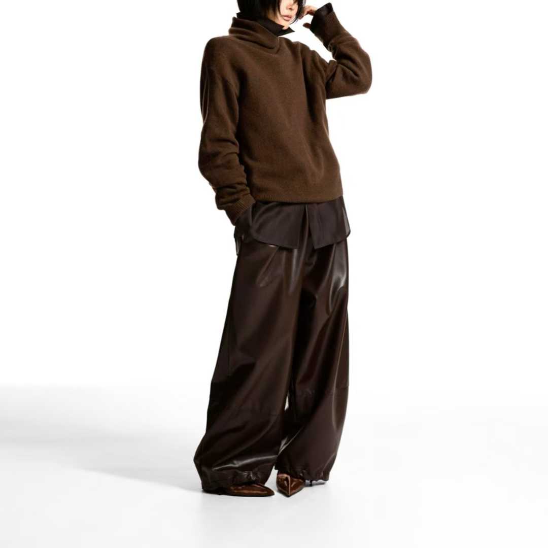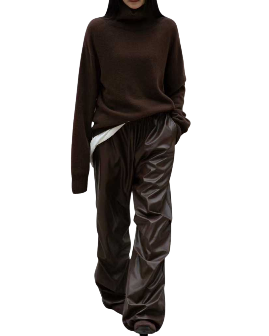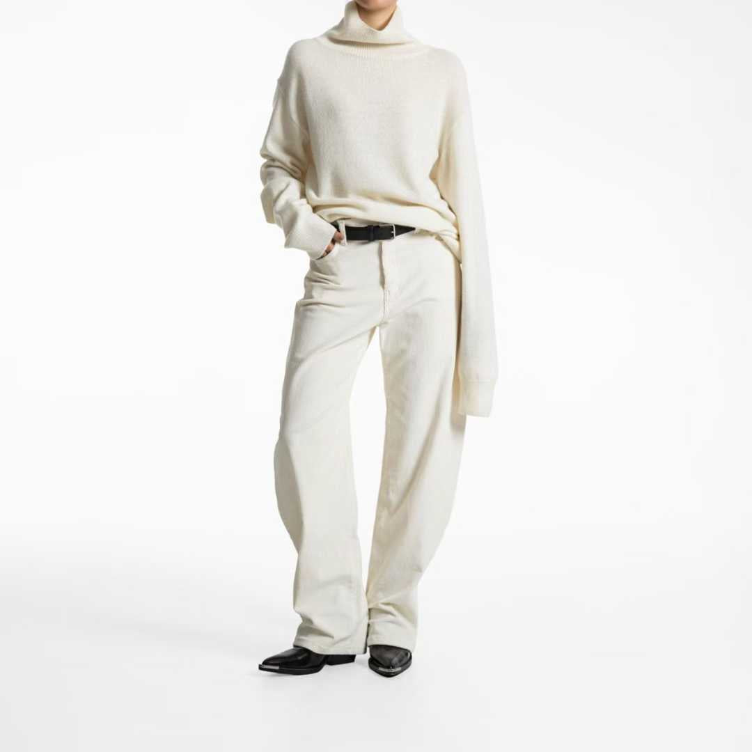 設計與風格: 經典的**堆堆領(高領)**設計,溫柔修飾頸部線條,同時有效防風保暖。寬鬆慵懶的版型與恰到好處的衣長,無論是將下襬紮進褲子裡,或自然垂墜,都能營造出毫不費力的隨性高級感。