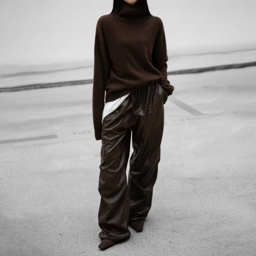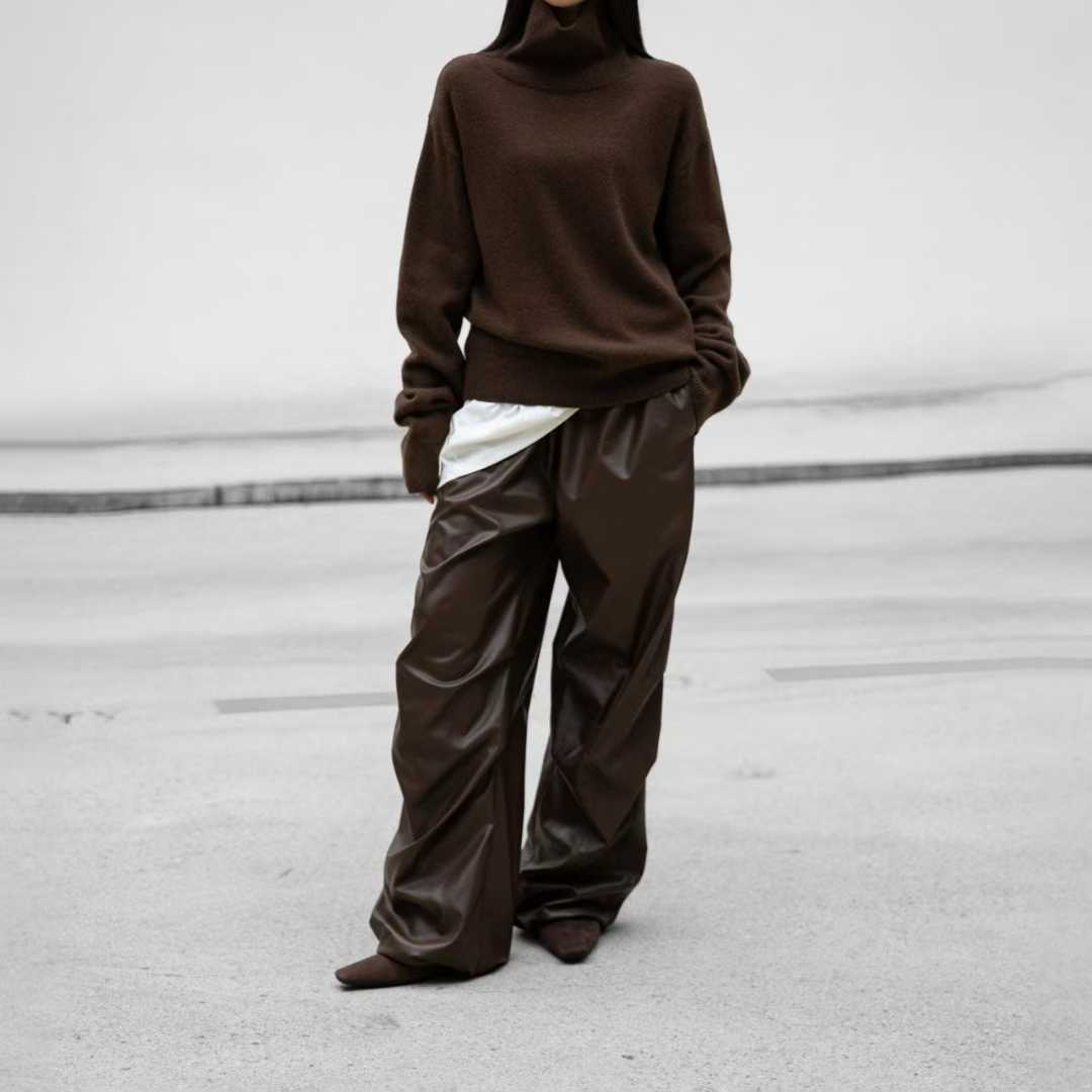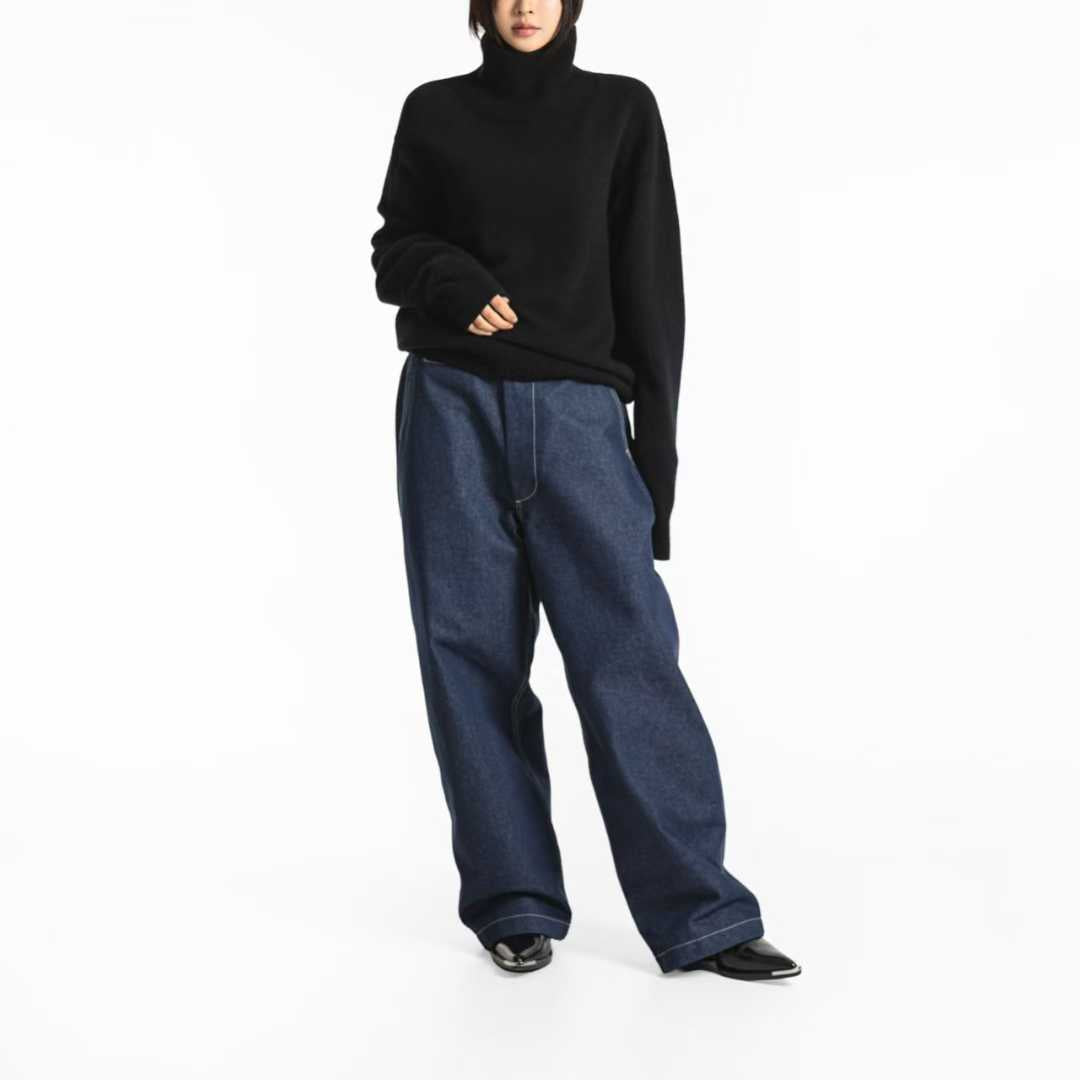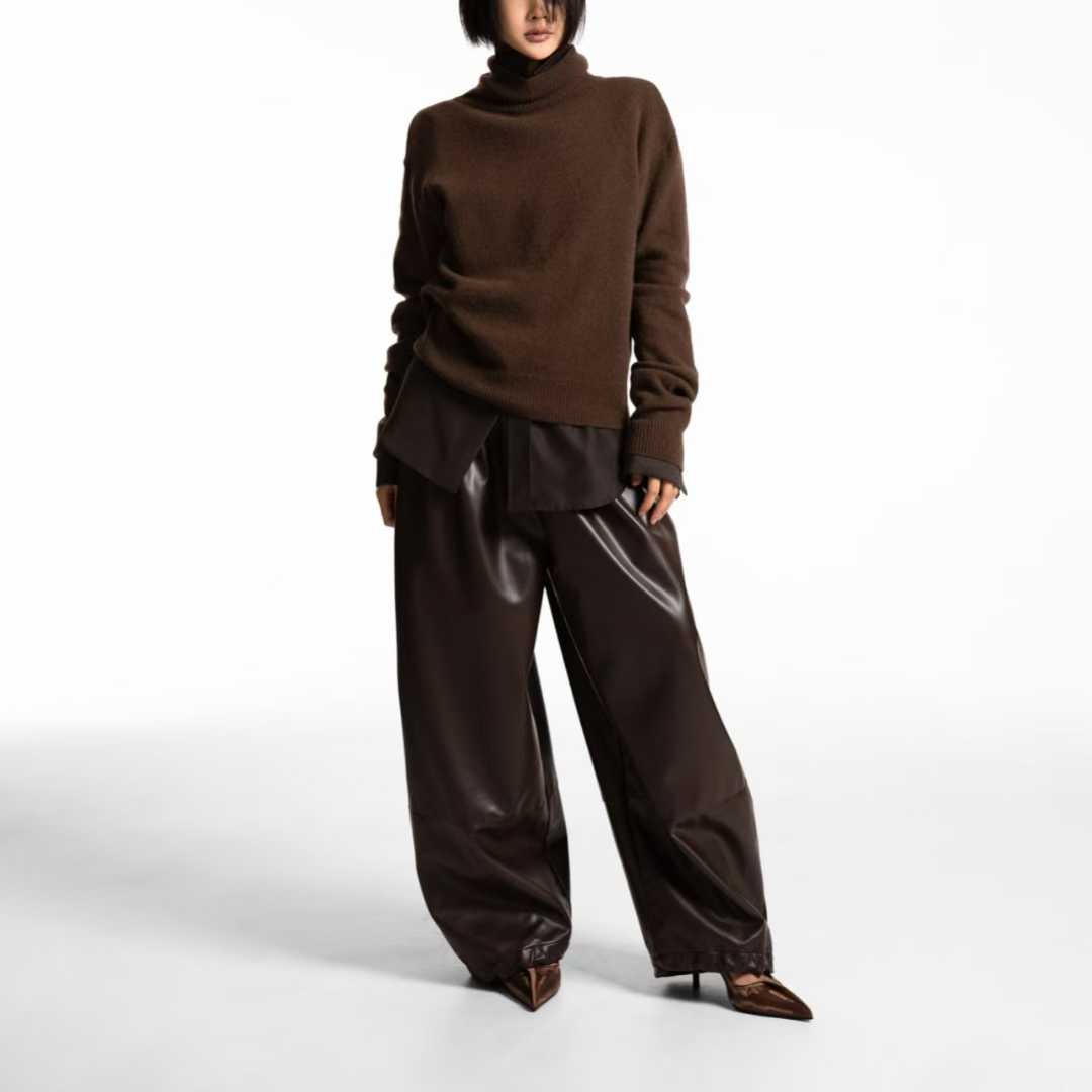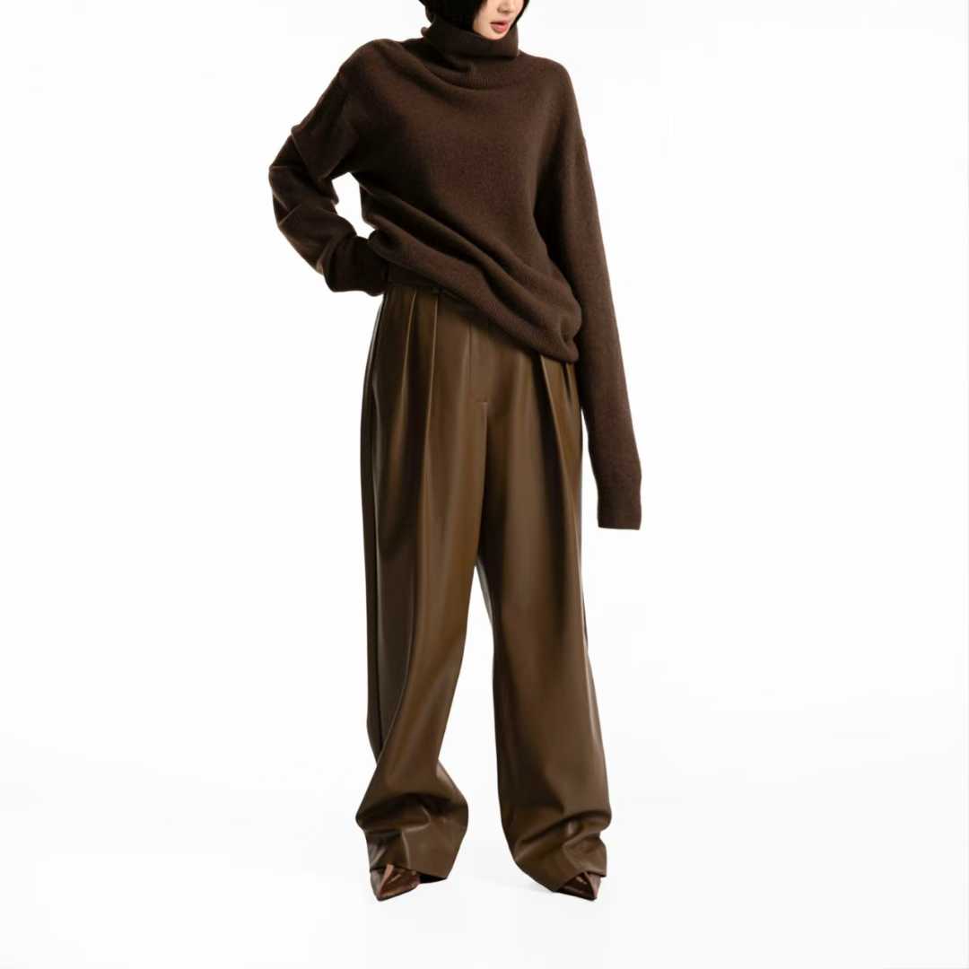設計與風格: 經典的**堆堆領(高領)**設計,溫柔修飾頸部線條,同時有效防風保暖。寬鬆慵懶的版型與恰到好處的衣長,無論是將下襬紮進褲子裡,或自然垂墜,都能營造出毫不費力的隨性高級感。